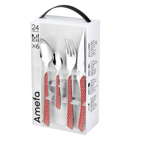 Eclat Geo komplet sztućców dla 6 osób 24 części czerwone