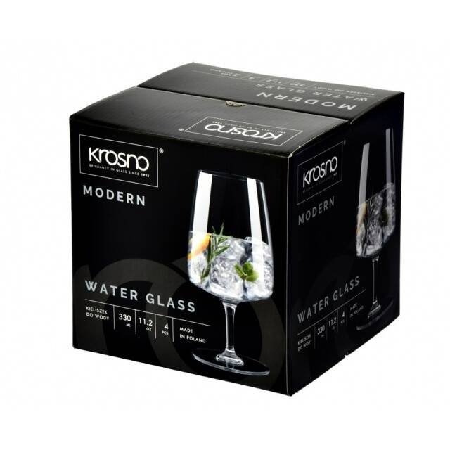 Kieliszek do wody to najmniejszy kieliszek z kolekcji Modern. Ma praktyczną pojemność 330 ml. Cechuje go geometryczny prosty kształt z szeroką czaszką delikatnie zwężającą się ku górze. Połączenie klasycznej czarki z prostą nogą i stabilną stopą świetnie będzie prezentować się w klasycznych jak i nowoczesnych wnętrzach. Niezwykle wytrzymałe szkło Crystalline, z którego został wykonany to gwarancja nieskazitelnego błysku i przejrzystości na długie lata.