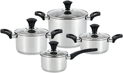 Zestaw garnków.Wykonane z wysokiej jakości stali nierdzewnej, wielowarstwowe dno idealnie przewodzi i utrzymuje temperaturę. Każdy garnek wyposażony w skalę i pokrywę z odpowietrznikiem. Nienagrzewające się uchwyty. Energooszczędne, nadają się do każdego typu kuchenek, również indukcyjnych.
