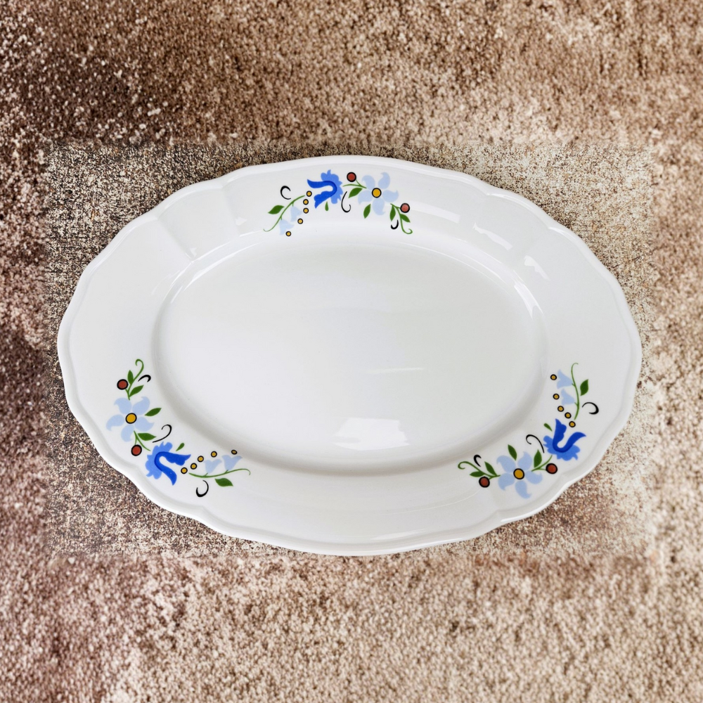Wykonana z wysokiej jakości białej porcelany produkcji polskiej firmy Lubiana. Dekoracja inspirowana tradycyjnym wzorem kaszubskim – motywy kwiatowe w odcieniach niebieskiego, żółtego i zieleni. Eleganckie, ponadczasowe wzornictwo łączące tradycję i nowoczesność. Trwały nadruk naszkliwny, odporny na codzienne użytkowanie. Doskonała na prezent, do domu lub jako element regionalnej zastawy stołowej. Produkt polski, wykonany z dbałością o detale.