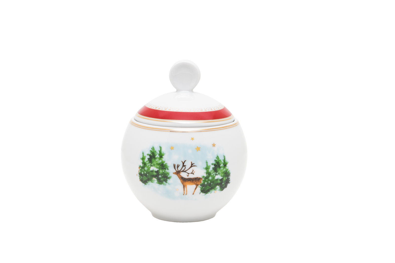 Kolekcja Bajkowe Święta to porcelana, która wygląda tak, jakby wyszła prosto z zimowej opowieści. Klasyczne, okrągłe talerze ze skrzydłami ozdobiono delikatną girlandą, na której połyskują złote gwiazdki. W centrum każdego talerza znajduje się jelonek, stojący na tle spokojnego, zasypanego śniegiem lasu. Jego obecność wprowadza na stół ciepło i łagodną magię świątecznych opowieści. Niepowtarzalny charakter kolekcji podkreślają różne kolory porcelany: głęboka czerwień i klasyczna zieleń. Dzięki temu każdy może skomponować własną wersję świątecznej zastawy. W kolekcji znajdują się talerze, pół miski, sosjerka, salaterki, cukiernica, dzbanek i imbryk, które razem tworzą pełną, spójną opowieść. Każdy element jest jak kolejna scena tej samej baśni subtelnej, zimowej i pełnej uroku, której magia potrafi przemienić zwykły posiłek w wyjątkowe świąteczne prze życie.