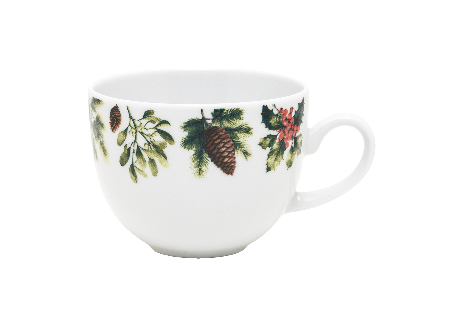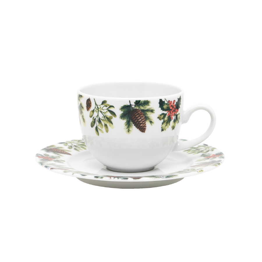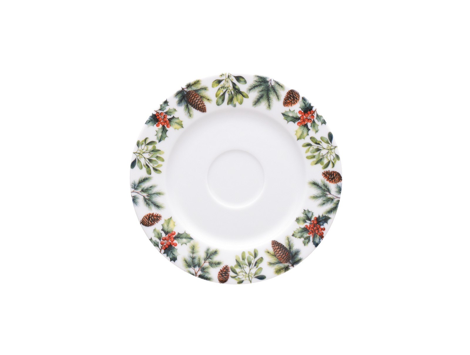Kolekcja December uchwyca wszystko to, co w zimie najpiękniejsze, bliskość natury, ciszę chłodnych poranków i spokojny rytm grudniowych dni. Na obrzeżach talerzy pojawiają się jemioła, ostrokrzew, szyszki i gałązki świerku, tworząc delikatny wieniec zimowych roślin, które od wieków towarzyszą świętom. To porcelana, która działa jak zaproszenie do chwili zatrzymania. Patrząc na jej zdobienia, łatwo wyobra zić sobie spacer po mroźnym lesie, zapach żywicy i skrzypienie śniegu pod stopami. Każdy talerz, filiżanka i kubek tworzą subtelny, naturalny rytuał codzienności bez przepychu, bez przesady, za to z ogromną dbałością o detale. December to kolekcja pełna zi mowego spokoju, w której natura splata się z tradycją. Idealna na stoły tych, którzy lubią, gdy grudzień ma w so bie więcej ciszy niż pośpiechu i gdy świąteczna atmosfera zaczyna się od drobnych, pięknych akcentów.